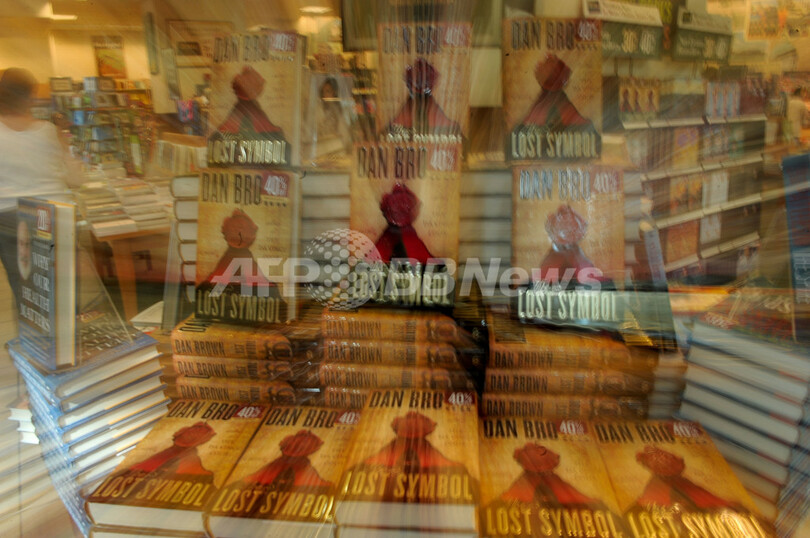 2003年の大ヒット小説『ダ・ヴィンチ・コード(The Da Vinci Code)』の続編、『The Lost Symbol(ザ・ロスト・シンボル)』(英語版)が15日、世界で発売された。今回は米ワシントンD.C.(Washington D.C.)を舞台に、ロバート・ラングドン(Robert Langdon)教授が秘密結社「フリーメイソン(Freemason)」に迫る。英国では、著者ダン・ブラウン(Dan Brown)氏のサインが入った同国版200冊も発売され、オーストラリア・シドニー(Sydney)では、誰が一番最初に読み終えるかという大会が行われた。写真は、ワシントンD.C.の書店に並んだ同著(2009年9月15日撮影)。(c)AFP/Nicholas KAMM