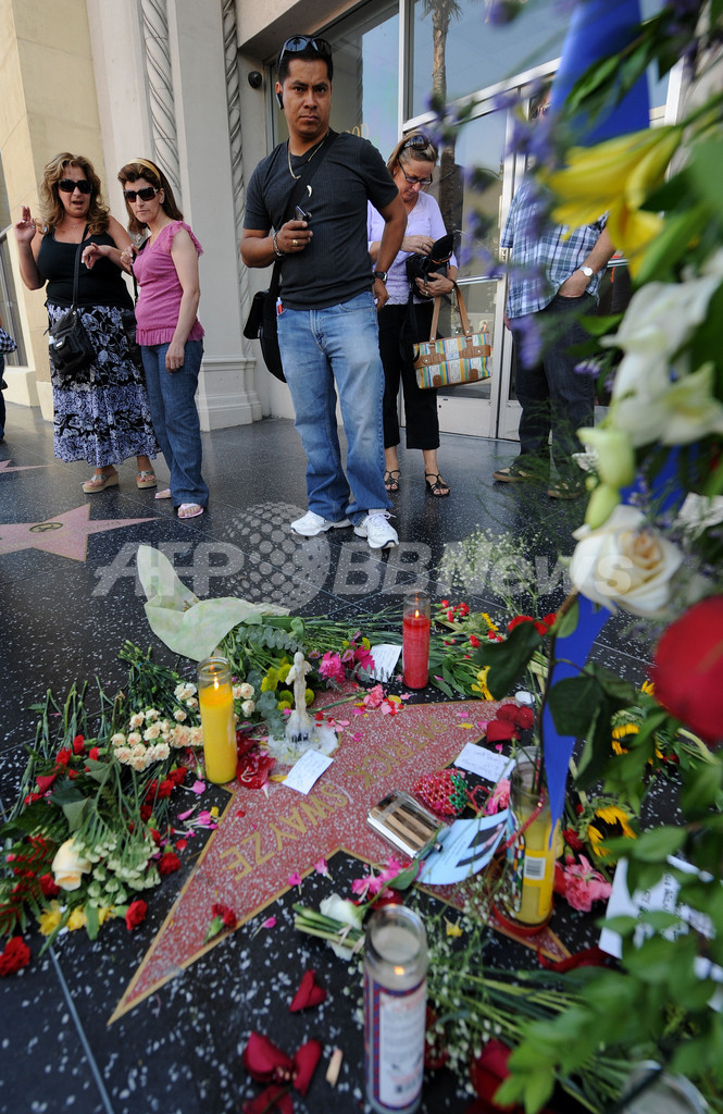 一方、ハリウッド(Hollywood)のウォーク・オブ・フェーム(Walk of Fame)では、スウェイジさんの星に花が供えられた。(c)AFP
