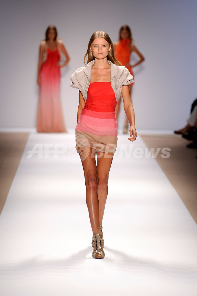 【9月17日 AFP】米・ニューヨーク市内で9日から17日まで10年春夏コレクションが開かれている。14日には、「カルロス・ミーレ(Carlos Miele)」が新作を発表した。(c)AFP/Getty Images
