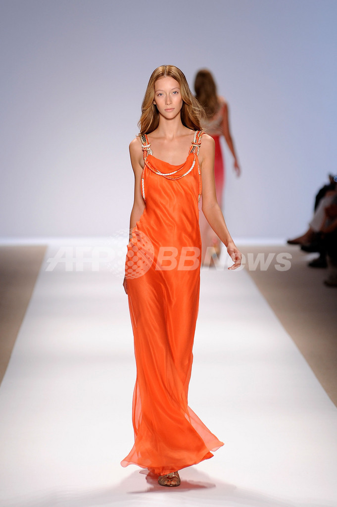 【9月17日 AFP】米・ニューヨーク市内で9日から17日まで10年春夏コレクションが開かれている。14日には、「カルロス・ミーレ(Carlos Miele)」が新作を発表した。(c)AFP/Getty Images