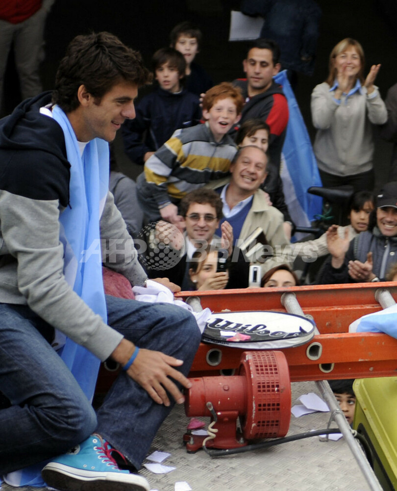 14日の決勝で世界ランキング1位のロジャー・フェデラー(Roger Federer、スイス)を下し、4大大会(グランドスラム)初優勝を飾ったデルポトロは、ブエノスアイレス(Buenos Aires)の南に位置する人口12万人の故郷タンディル(Tandil)の通りを消防車に乗ってパレードした。