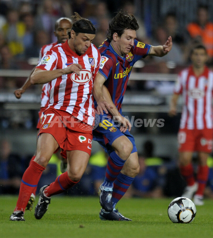 後半に入り、バルセロナはリズムが落ちたが、39分にディエゴ・フォルラン(Diego Forlan)に得点を許した以外は試合を支配した。ロスタイムにはメッシがこの日2点目のゴールを決めた。(c)AFP/Tim Hanlon