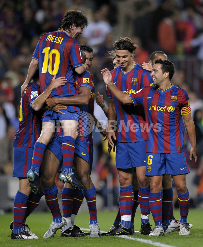 バルセロナは前半、2分にズラタン・イブラヒモビッチ(Zlatan Ibrahimovic)の得点で先制すると、16分にはシャビ・エルナンデス(Xavi Hernandez)のパスからメッシ、30分にはフリーキックからダニエル・アルヴェス(Daniel Alves)、41分にはセイドゥ・ケイタ(Seydou Keita)が得点し、4点を奪った。