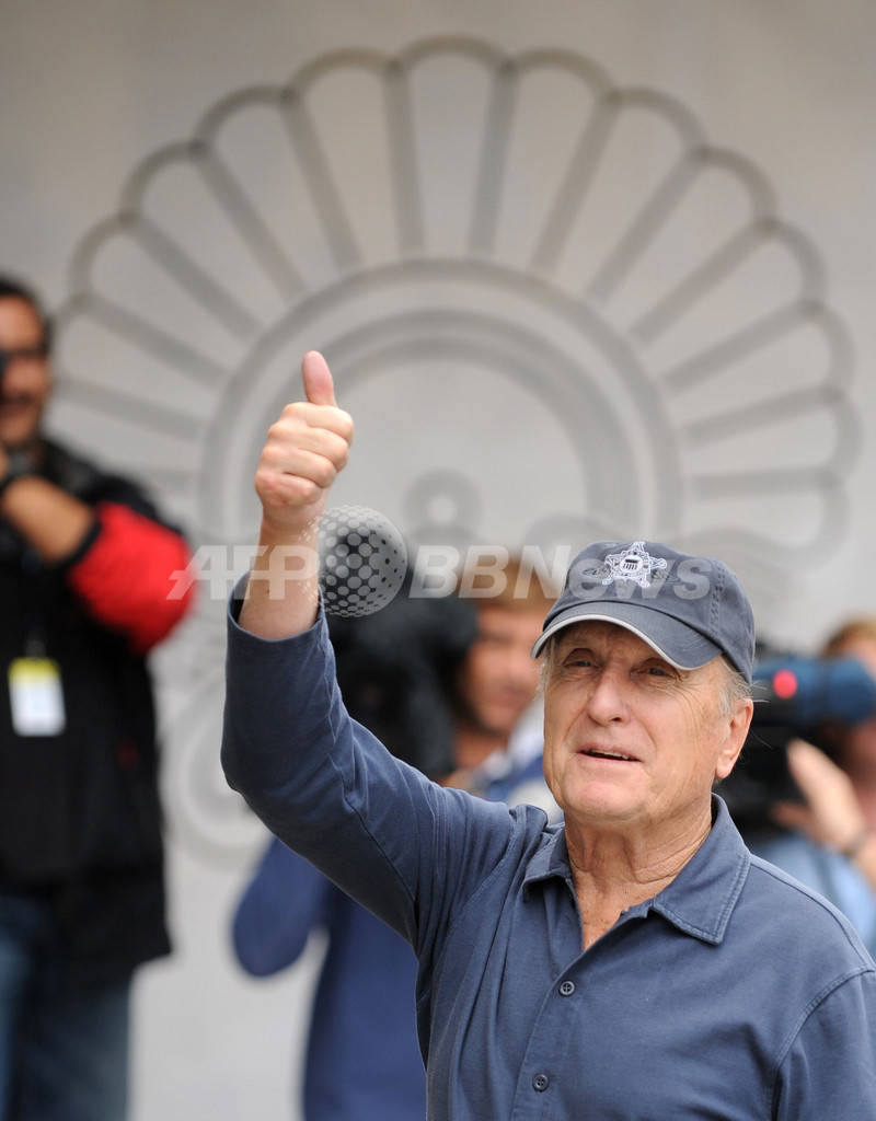 写真は、ホテルに到着した米俳優ロバート・デュヴァル(Robert Duvall、2009年9月20日撮影)。(c)AFP/Rafa Rivas