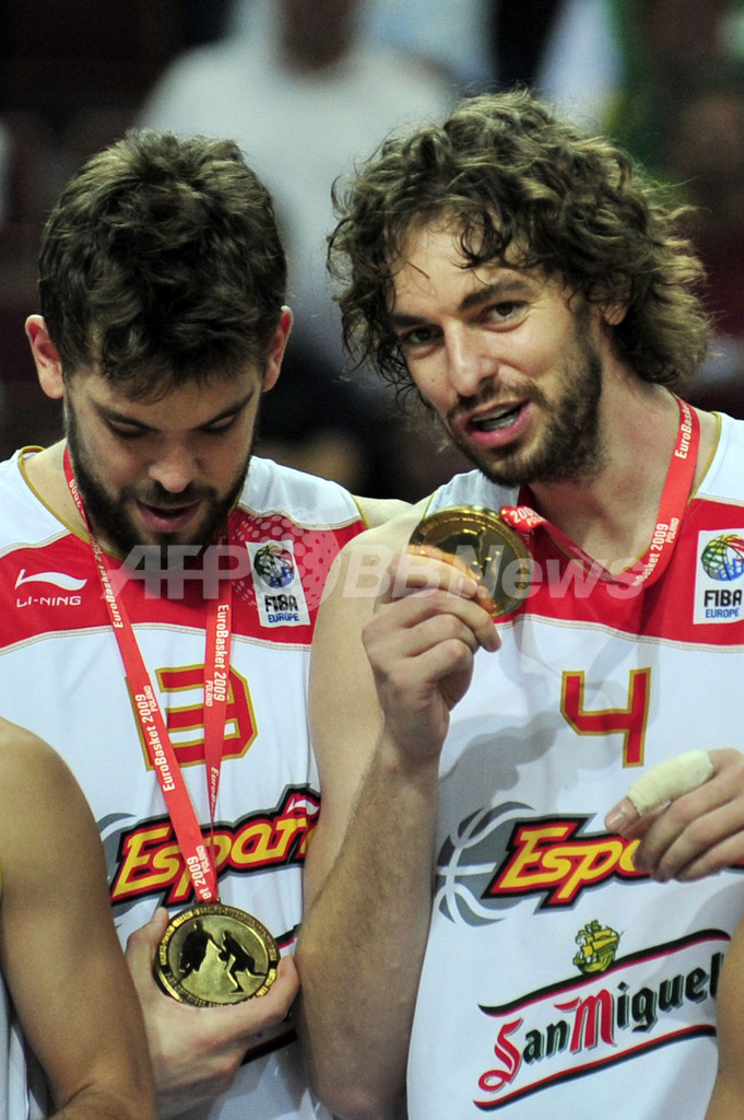 スポーツ バスケットボール スペインが初優勝 パウ・ガソルがMVPに、欧州選手権 2009年9月21日 14:04 発信地:カトウィツェ/ポーランド [ ヨーロッパ ポーランド ] このニュースをシェア ‹ › ❮ 2/20 ❯ バスケットボール欧州選手権2009(%%Euro Basket 2009%%)決勝、スペイン対セルビア。試合はスペインが85-63でセルビアを破り、大会初優勝を飾った。写真は表彰式に臨むスペインのマルク・ガソル(%%Marc Gasol%%、左)とパウ・ガソル(%%Pau Gasol%%、右)。(2009年9月20日撮影)(c)AFP/ARIS MESSINIS 画像作成中 ! 【9月21日 AFP】バスケットボール欧州選手権2009(Euro Basket 2009)決勝、スペイン対セルビア。試合はスペインが85-63でセルビアを破り、大会初優勝を飾った。(c)AFP バスケットボール 一覧へ> メディア・報道関係・法人の方向け 写真・動画 購入のお問合せ>