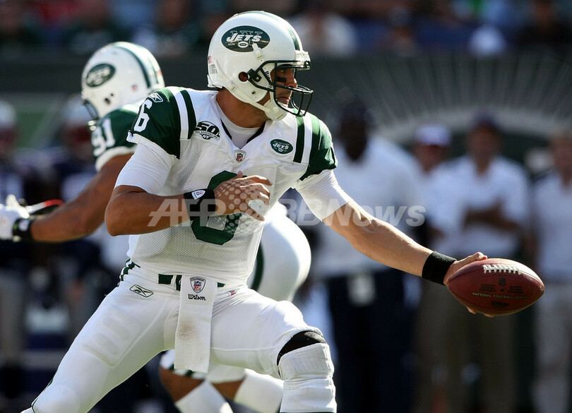 ジェッツは、新人クォーターバック(QB)のマーク・サンチェス(Mark Sanchez)が、1タッチダウンを含む、パス22回のうち16回を成功させて163ヤードを獲得した。(c)AFP