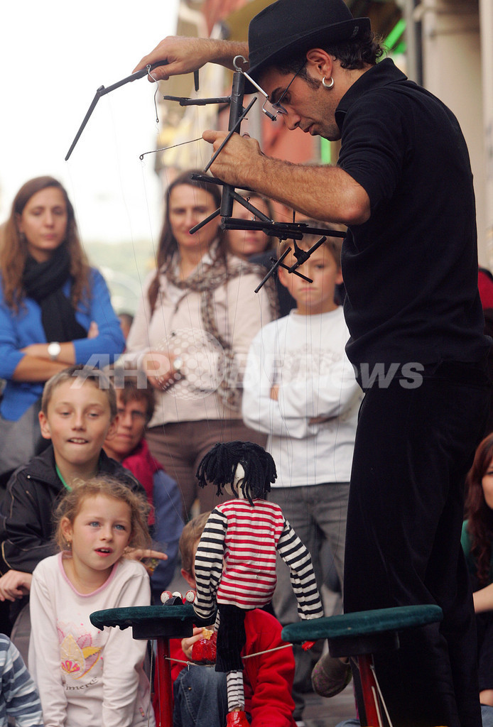 写真は、シャルルビルメジエールの路上で、人形を操る人形師(2009年9月18日撮影)。(c)AFP/FRANCOIS NASCIMBENI