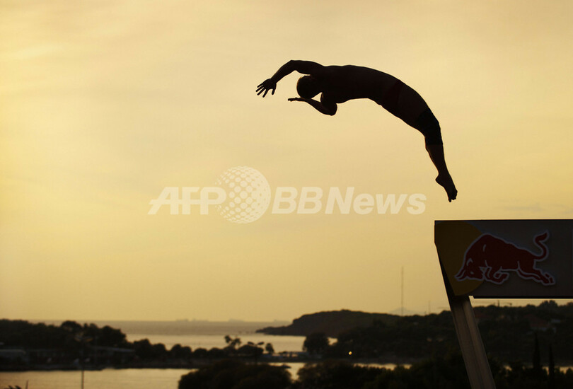 【9月21日 AFP】ギリシャのリゾート地、ブリアグメニ(Vouliagmeni)で飲料メーカー、レッドブル(Red Bull)主催の飛び込みコンテスト「レッドブル・クリフ・ダイビング(Red Bull Cliff Diving)」が開催され、参加者たちは高さ26.5メートルの飛び込み台からのダイブを競った。世界王者オーランド・デュケ(Orlando Duque、コロンビア)に、ゲーリー・ハント(Gary Hunt、英)が迫ったが、最後はデュケが競り勝ち、優勝した。(c)AFP