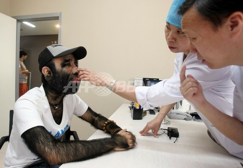 ニュース ライフ 「中国で最も毛深い男」、病院で診察 2009年9月23日 10:32 発信地:杭州/中国 [ 中国・台湾 中国 ] このニュースをシェア ‹ › ❮ 10/10 ❯ 身体の96%が体毛で覆われ、「中国で最も毛深い男」として知られる于震寰(Yu Zhenhuan)さんが16日、同国浙江(Zhejiang)省杭州(Hangzhou)の病院で検査を受けた。遼寧(Liaoning)省の農家に生まれた于さんは、2歳の頃に耳道の体毛が成長し始めた。家族の中で体毛が濃いのは于さんだけだという。写真は、医師の診察を受ける于さん(2009年9月16日撮影)。(c)AFP CHINA XTRA 画像作成中 ! 【9月23日 AFP】身体の96%が体毛で覆われ、「中国で最も毛深い男」として知られる于震寰(Yu Zhenhuan)さんが16日、同国浙江(Zhejiang)省杭州(Hangzhou)の病院で検査を受けた。(c)AFP ライフ 一覧へ> メディア・報道関係・法人の方向け 写真・動画 購入のお問合せ>