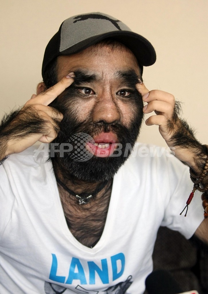 ニュース ライフ 「中国で最も毛深い男」、病院で診察 2009年9月23日 10:32 発信地:杭州/中国 [ 中国・台湾 中国 ] このニュースをシェア ‹ › ❮ 9/10 ❯ 身体の96%が体毛で覆われ、「中国で最も毛深い男」として知られる于震寰(Yu Zhenhuan)さんが16日、同国浙江(Zhejiang)省杭州(Hangzhou)の病院で検査を受けた。遼寧(Liaoning)省の農家に生まれた于さんは、2歳の頃に耳道の体毛が成長し始めた。家族の中で体毛が濃いのは于さんだけだという。写真は、病院で会見を開いた于さん(2009年9月16日撮影)。(c)AFP CHINA XTRA 画像作成中 ! 【9月23日 AFP】身体の96%が体毛で覆われ、「中国で最も毛深い男」として知られる于震寰(Yu Zhenhuan)さんが16日、同国浙江(Zhejiang)省杭州(Hangzhou)の病院で検査を受けた。(c)AFP ライフ 一覧へ> メディア・報道関係・法人の方向け 写真・動画 購入のお問合せ>