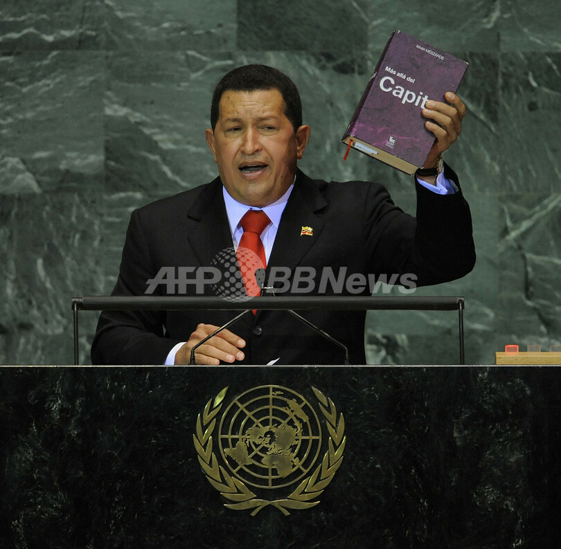 【9月25日 AFP】米国に対する激しい糾弾で知られるベネズエラのウゴ・チャベス(Hugo Chavez)大統領は24日、ニューヨークで開かれた国連総会(UN General Assembly)の一般討論演説で、米国から「悪魔の硫黄臭」が消え「希望のにおい」がすると述べ、バラク・オバマ(Barack Obama)米大統領を持ち上げる姿勢を示した。