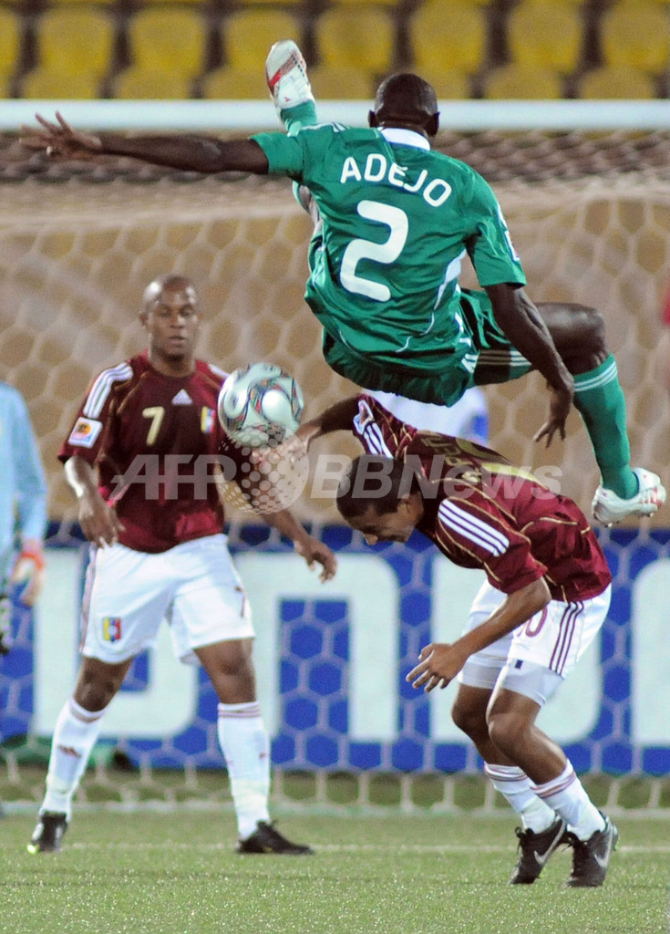 スポーツ サッカー ベネズエラがナイジェリアに勝利、U20W杯 2009年9月26日 9:35 発信地:カイロ/エジプト [ 中東・北アフリカ エジプト ] このニュースをシェア ‹ › ❮ 5/5 ❯ サッカーU20W杯2009、1次リーグB組ナイジェリア対ベネズエラ。ボールを競り合うベネズエラのルイス・ペーニャ(%%Louis Pena%%、下)とナイジェリアのダニエル・アデージョ(%%Daniel Adejo%%)。(2009年9月25日撮影)(c)AFP/AMR AHMAD 画像作成中 ! 【9月26日 AFP】サッカーU20W杯2009(U-20 World Cup 2009)1次リーグB組、ナイジェリア対ベネズエラ。試合はベネズエラが1-0でナイジェリアを下した。(c)AFP サッカー 一覧へ> メディア・報道関係・法人の方向け 写真・動画 購入のお問合せ>