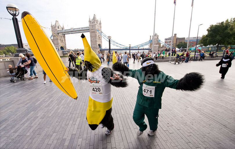ニュース ライフ ロンドン金融街を駆け抜けるゴリラの集団、「グレート・ゴリラ・ラン」 2009年9月27日 9:58 発信地:ロンドン/英国 [ ヨーロッパ 英国 ] このニュースをシェア ‹ › ❮ 7/9 ❯ ロンドン(London)で26日、ゴリラの着ぐるみを着て市内の7キロのコースを走る「グレート・ゴリラ・ラン(Great Gorilla Run)」が開催された。アフリカで地域に根ざした雇用と教育を住民に提供することを通じてゴリラの生息地を守る活動をしている団体「Gorilla Organisation」が企画した資金集めのためのイベントだ。写真は「グレート・ゴリラ・ラン」で金融地区を走る参加者(2009年9月26日撮影)。(c)AFP/Leon Neal 画像作成中 ! 【9月27日 AFP】ロンドン(London)で26日、ゴリラの着ぐるみを着て市内の7キロのコースを走る「グレート・ゴリラ・ラン(Great Gorilla Run)」が開催された。アフリカで地域に根ざした雇用と教育を住民に提供することを通じてゴリラの生息地を守る活動をしている団体「Gorilla Organisation」が企画した資金集めのためのイベントだ。(c)AFP ライフ 一覧へ> メディア・報道関係・法人の方向け 写真・動画 購入のお問合せ>