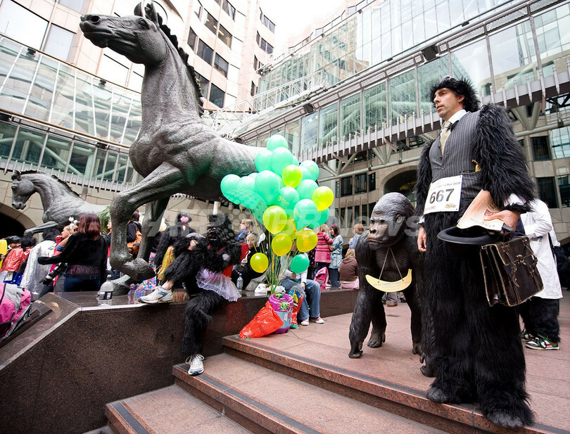 ニュース ライフ ロンドン金融街を駆け抜けるゴリラの集団、「グレート・ゴリラ・ラン」 2009年9月27日 9:58 発信地:ロンドン/英国 [ ヨーロッパ 英国 ] このニュースをシェア ‹ › ❮ 3/9 ❯ ロンドン(London)で26日、ゴリラの着ぐるみを着て市内の7キロのコースを走る「グレート・ゴリラ・ラン(Great Gorilla Run)」が開催された。アフリカで地域に根ざした雇用と教育を住民に提供することを通じてゴリラの生息地を守る活動をしている団体「Gorilla Organisation」が企画した資金集めのためのイベントだ。写真は「グレート・ゴリラ・ラン」のスタート地点に集まった参加者(2009年9月26日撮影)。(c)AFP/Leon Neal 画像作成中 ! 【9月27日 AFP】ロンドン(London)で26日、ゴリラの着ぐるみを着て市内の7キロのコースを走る「グレート・ゴリラ・ラン(Great Gorilla Run)」が開催された。アフリカで地域に根ざした雇用と教育を住民に提供することを通じてゴリラの生息地を守る活動をしている団体「Gorilla Organisation」が企画した資金集めのためのイベントだ。(c)AFP ライフ 一覧へ> メディア・報道関係・法人の方向け 写真・動画 購入のお問合せ>