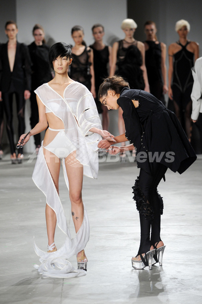 【9月20日 AFP】米・ニューヨーク市内で9日から17日まで10年春夏コレクションが開かれた。17日には、「スリーアズフォー(ThreeAsFour)」が新作を発表した。(c)AFP/Getty Images