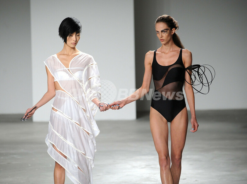 【9月20日 AFP】米・ニューヨーク市内で9日から17日まで10年春夏コレクションが開かれた。17日には、「スリーアズフォー(ThreeAsFour)」が新作を発表した。(c)AFP/Getty Images