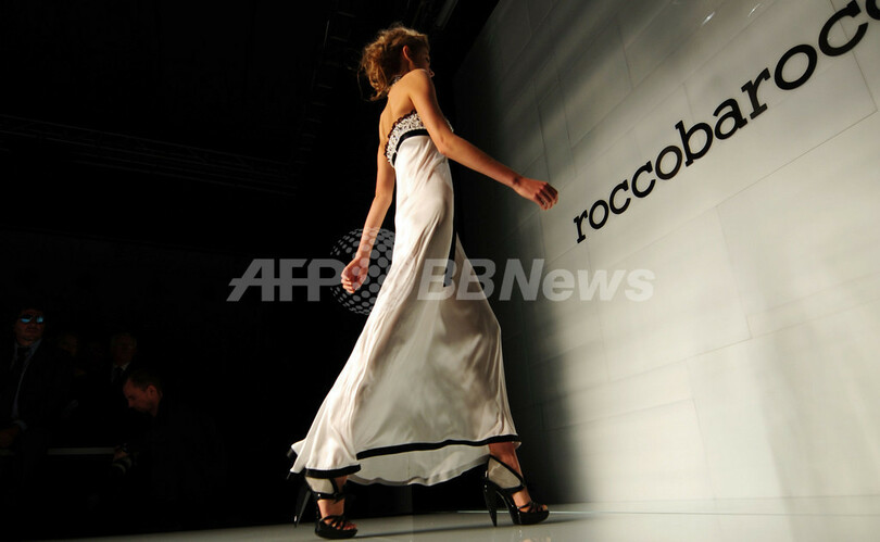 【9月29日 AFP】イタリア・ミラノ(Milan)市内で23日から30日まで10年春夏コレクションが開かれている。28日には、「ロッコ バロッコ(Roccobarocco)」が新作を発表した。(c)AFP