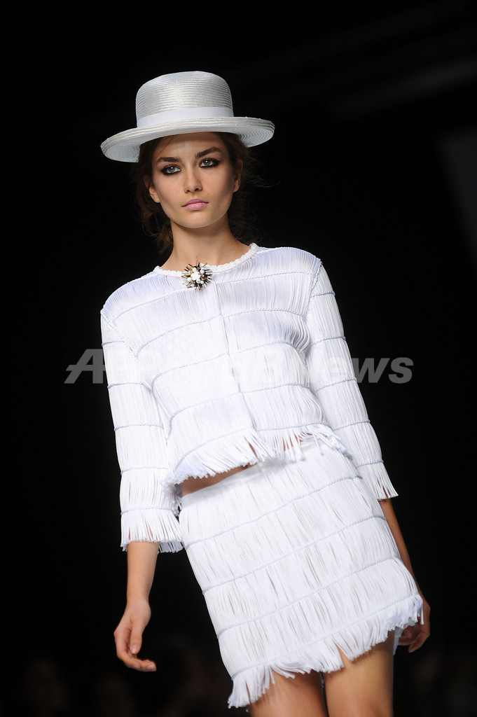 【9月29日 AFP】イタリア・ミラノ(Milan)市内で23日から30日まで10年春夏コレクションが開かれている。28日には、「ロッコ バロッコ(Roccobarocco)」が新作を発表した。(c)AFP