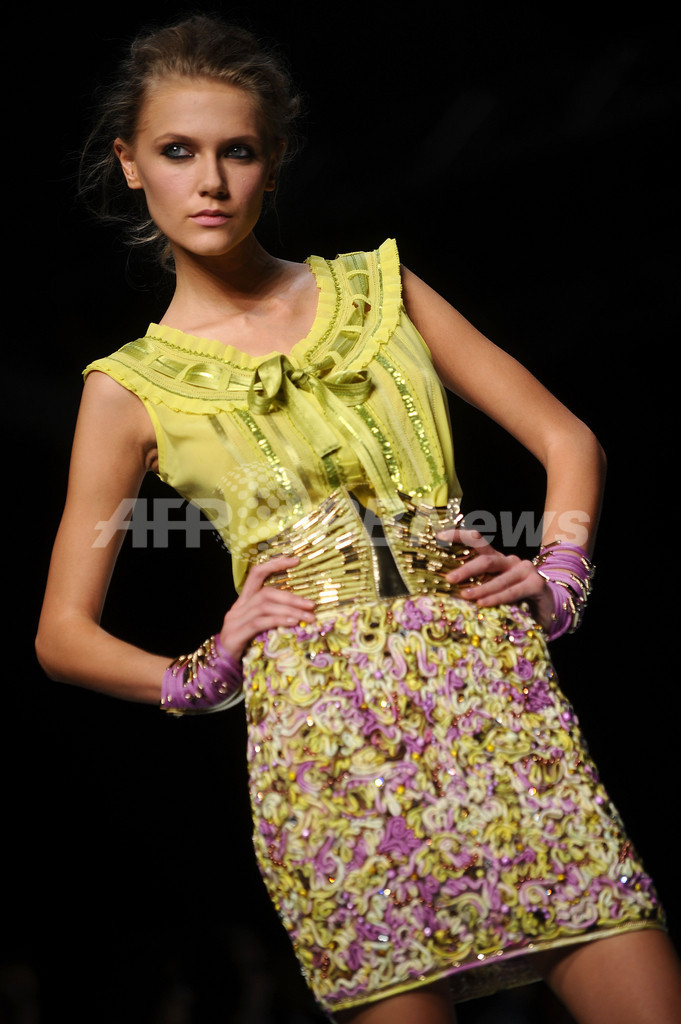 【9月29日 AFP】イタリア・ミラノ(Milan)市内で23日から30日まで10年春夏コレクションが開かれている。28日には、「ロッコ バロッコ(Roccobarocco)」が新作を発表した。(c)AFP