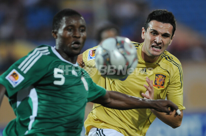 スポーツ サッカー スペインとベネズエラが2連勝で決勝トーナメントへ、U20W杯 2009年9月29日 11:15 発信地:カイロ/エジプト [ 中東・北アフリカ エジプト ] このニュースをシェア ‹ › ❮ 1/6 ❯ サッカーU20W杯2009、1次リーグB組ナイジェリア対スペイン。ナイジェリアのラヒーム・ラワル(%%Raheem Lawal%%)と競り合うスペインのキケ(%%Enrique Garcia Martinez "Kike"%%、右)。(2009年9月28日撮影)(c)AFP/KHALED DESOUKI 画像作成中 ! 【9月29日 AFP】サッカーU20W杯2009(U-20 World Cup 2009)は28日、1次リーグB組の2試合が行われ、スペインはナイジェリアに2-0、ベネズエラはタヒチに8-0で勝利した。B組は2連勝のスペインとベネズエラが勝ち点6で決勝トーナメント進出を決めた。(c)AFP サッカー 一覧へ> メディア・報道関係・法人の方向け 写真・動画 購入のお問合せ>