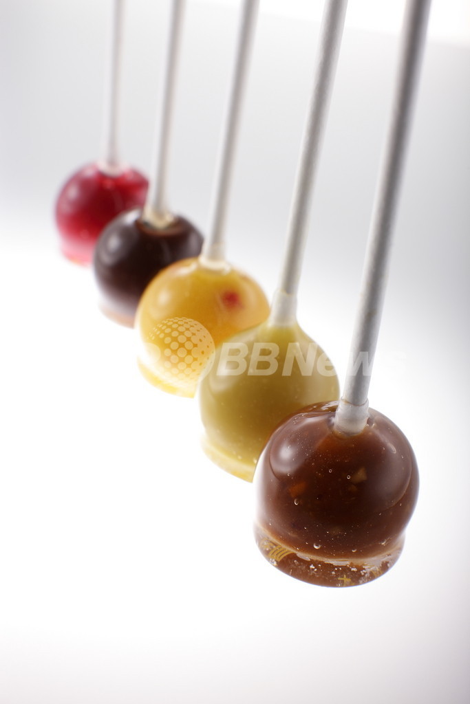 キャラメルに仲間入りするのは、見た目も名前もかわいい「キャラメル・ロリポップ」だ。アンリ・ルルーのスペシャリテである柔らかいキャラメルを飴でコーティング。C.B.S.、ショコラ、フランボアーズ、アナナス・ベ・ローズ、シトロン・ヴェールの5種類で、それぞれの色をした丸い棒付きキャラメルとなっている。