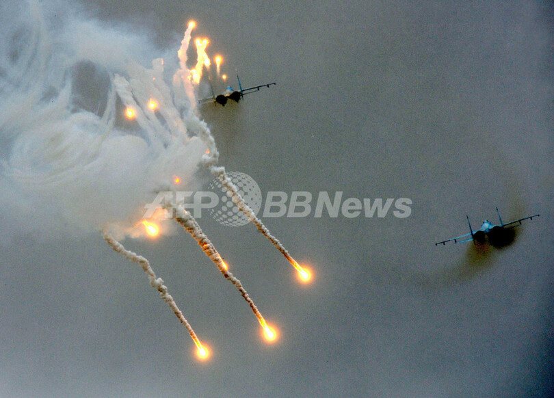 写真は、Obuz-Lesnovskyの射撃練習場で行われたロシア・ベラルーシ合同軍事演習「West-2009」に参加するロシア軍戦闘機「Su-27」(2009年9月29日撮影)。(c)AFP/VIKTOR DRACHEV