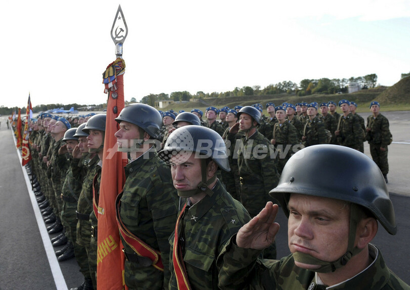 【10月1日 AFP】ベラルーシ南西部バラナビチ(Baranovichi)近郊Obuz-Lesnovskyの射撃練習場で前月29日、兵士1万2000人以上、戦車200台以上、装甲車470台、軍用機100機以上などが参加するロシア・ベラルーシ合同軍事演習「West-2009」が行われた。(c)AFP