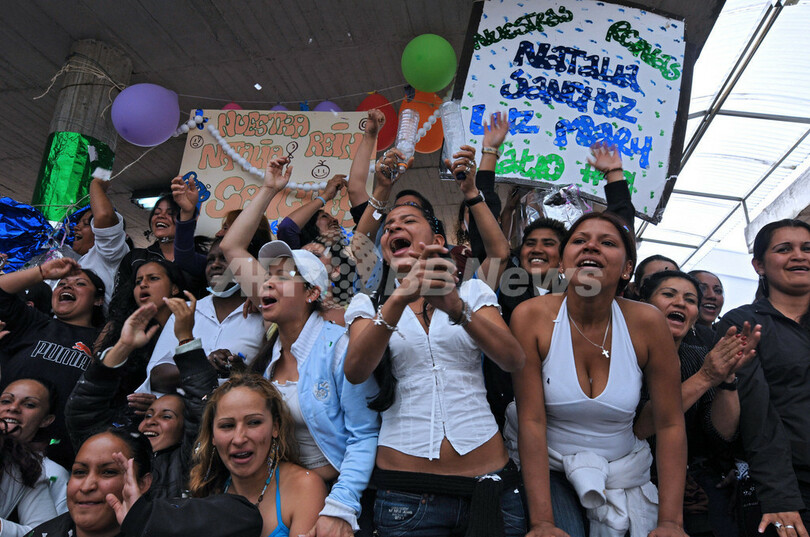 ニュース ライフ 女子刑務所で「ミス・コンジニアリティ」コンテスト、コロンビア 2009年10月1日 22:56 発信地:ボゴタ/コロンビア [ 中南米 コロンビア ] このニュースをシェア ‹ › ❮ 9/30 ❯ コロンビアの首都ボゴタ(Bogota)にある女子刑務所で9月25日、受刑者の中から一緒にいてもっとも楽しかった好感度の高い美人を選ぶ「ミス・コンジニアリティ」コンテストが開催された。このコンテストは毎年開催されている。写真は、コンテストを見ながら歓声を上げる受刑者(2009年9月25日撮影)。(c)AFP/Rodrigo ARANGUA 画像作成中 ! 【10月1日 AFP】コロンビアの首都ボゴタ(Bogota)にある女子刑務所で9月25日、一緒にいてもっとも楽しかった好感度の高い美人を選ぶ「ミス・コンジニアリティ」コンテストが開催された。(c)AFP ライフ 一覧へ> メディア・報道関係・法人の方向け 写真・動画 購入のお問合せ>