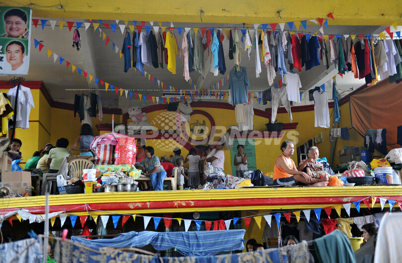 写真は、フィリピンの首都マニラ(Manila)の南にあるラグナ(Laguna)州サンペドロ(San Pedro)の体育館に避難する被災者たち(2009年9月30日撮影)。(c)AFP/TED ALJIBE