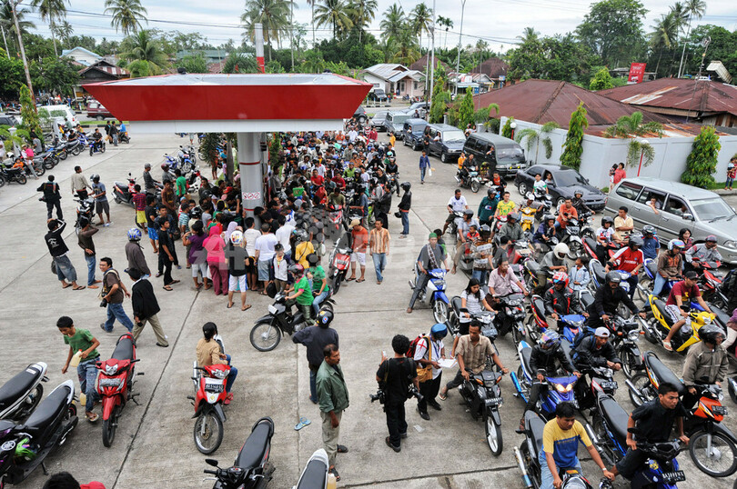 同島西部のパダン(Padang)では、激しい交通渋滞とがれきの山で混乱が生じ、先を急ごうとする救急車のサイレンが鳴り響いている。