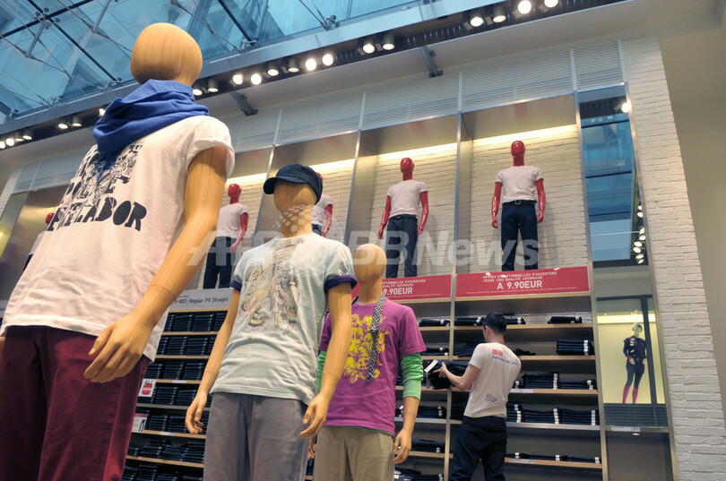写真は、パリにオープンしたカジュアル衣料ユニクロのパリ・オペラ店の店内(2009年10月1日撮影)。(c)AFP/ERIC PIERMONT