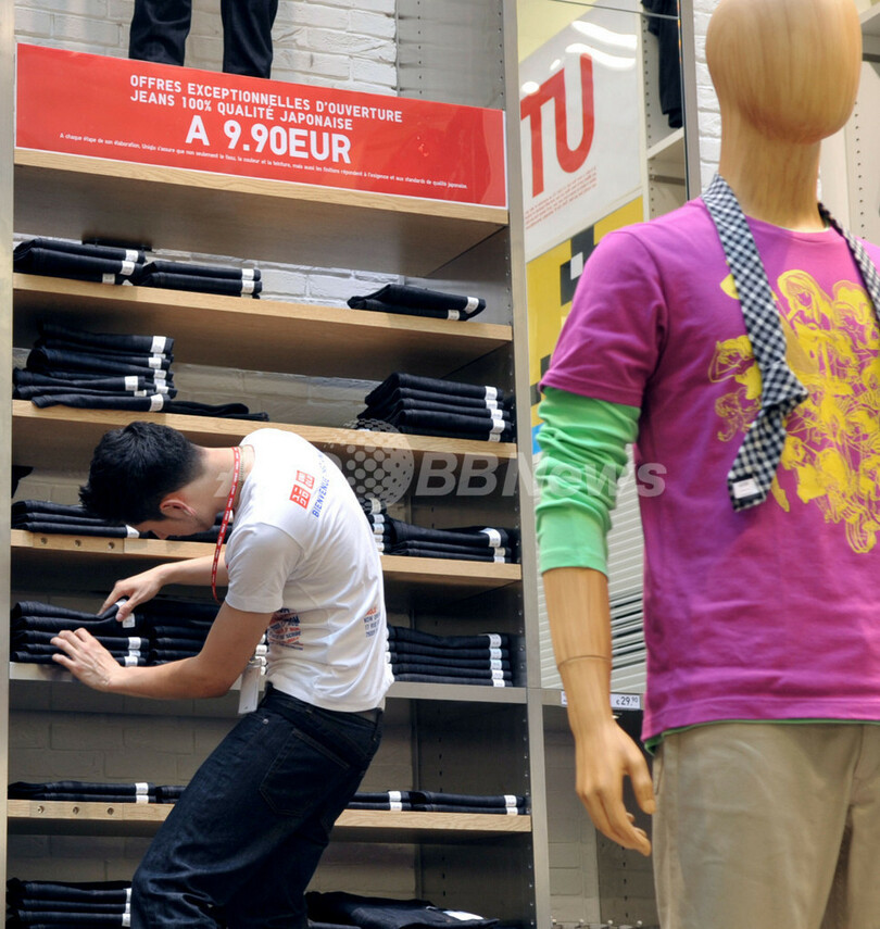 写真は、パリにオープンしたカジュアル衣料ユニクロのパリ・オペラ店の店内(2009年10月1日撮影)。(c)AFP/ERIC PIERMONT