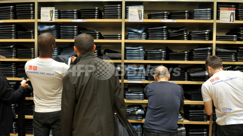写真は、パリにオープンしたカジュアル衣料ユニクロのパリ・オペラ店の店内(2009年10月1日撮影)。(c)AFP/ERIC PIERMONT