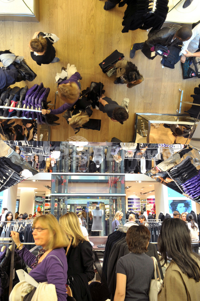 写真は、パリにオープンしたカジュアル衣料ユニクロのパリ・オペラ店の店内(2009年10月1日撮影)。(c)AFP/ERIC PIERMONT