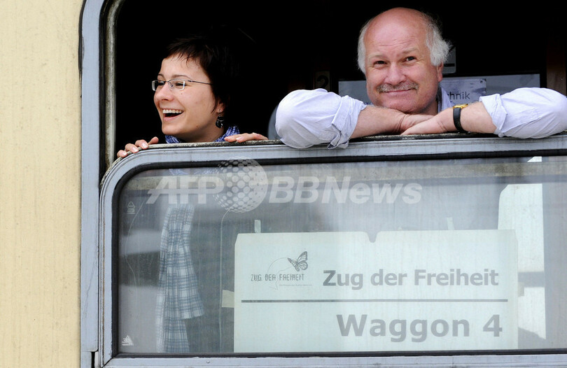 ニュース ライフ 旧東ドイツ市民を西へ運んだ「自由への列車」が復活、20周年記念で 2009年10月2日 19:06 発信地:ドレスデン/ドイツ [ ヨーロッパ ドイツ ] このニュースをシェア ‹ › ❮ 5/5 ❯ 旧東ドイツ時代の「自由への列車(Freedom Train)」運行20周年を記念し、ドイツ東部ドレスデン(Dresden)駅に到着した再現列車の窓から身を乗り出す乗客ら(2009年10月1日撮影)。(c)AFP/DDP/NORBERT MILLAUER 画像作成中 ! 【10月2日 AFP】1989年に旧西ドイツへの出国を求める旧東ドイツ市民を運んだ「自由への列車(Freedom Train)」の運行20周年を記念する特別列車が1日、当時と同様にチェコ・プラハ(Prague)からドイツ東部ドレスデン(Dresden)に到着した。「自由への列車」の運行は、共産主義国家の崩壊につながった出来事の1つとされる。(c)AFP ライフ 一覧へ> メディア・報道関係・法人の方向け 写真・動画 購入のお問合せ>