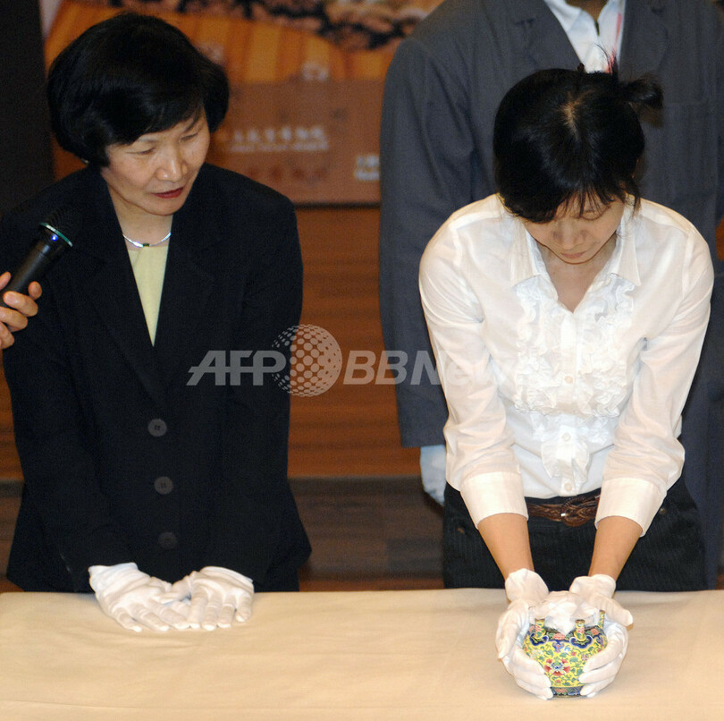 ニュース ライフ 台湾と中国、2つの故宮博物院による合同展が台北で 2009年10月2日 21:56 発信地:台北/台湾 [ 中国・台湾 台湾 ] このニュースをシェア ‹ › ❮ 4/6 ❯ 台湾・台北(Taipei)の故宮博物院(National Palace Museum)で、中国・北京(Beijing)の故宮博物院から貸し出された美術品を披露する周功シン(Chou Kung-shin)館長(左)と博物館員(2009年10月2日撮影)。(c)AFP/PATRICK LIN 画像作成中 ! 【10月2日 AFP】台湾・台北(Taipei)の故宮博物院(National Palace Museum)で2日、清朝の皇帝、雍正帝(Yong Zheng)時代の美術品を集めた展覧会のため、中国・北京(Beijing)の故宮博物院から貸し出された美術品37点が、報道陣に公開された。7日から始まる「雍正帝展」は、台湾と中国大陸にある2つの故宮博物院による、初の合同展となる。(c)AFP ライフ 一覧へ> メディア・報道関係・法人の方向け 写真・動画 購入のお問合せ>