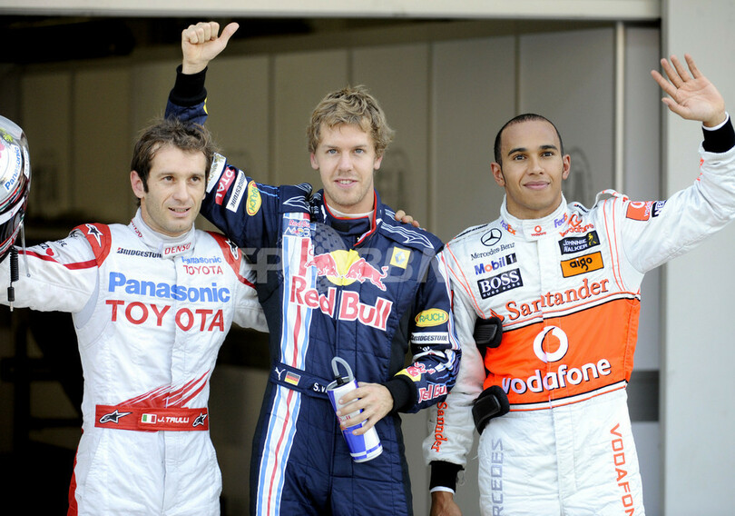 【10月3日 AFP】09F1第15戦日本GP(Japanese Grand Prix 2009)予選。クラッシュと赤旗が続出したこの日、レッドブル(Red Bull)のセバスチャン・ベッテル(Sebastian Vettel)が、トップタイムとなるベストラップ1分32秒160を記録し、シーズン4度目のポールポジションを獲得した。