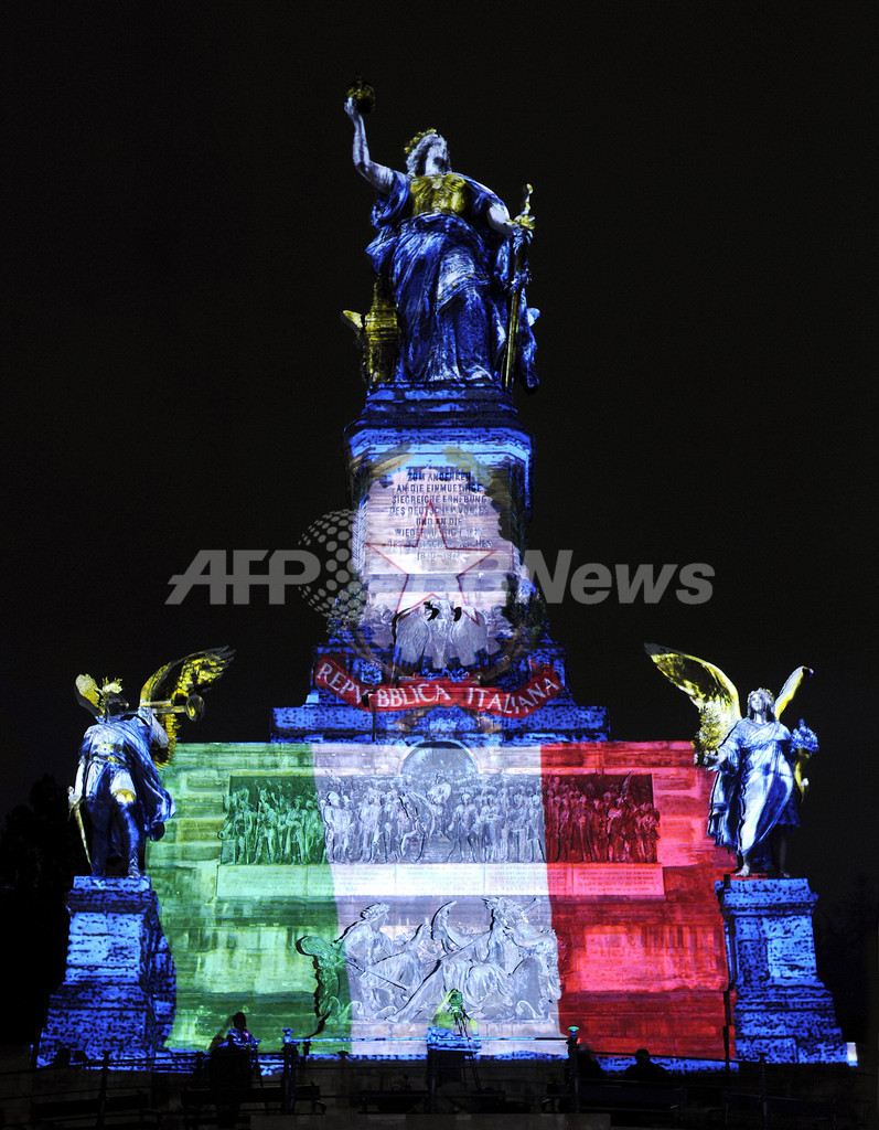 ニュース ライフ ドイツの記念碑、欧州各国の国旗色にライトアップ 2009年10月5日 15:10 発信地:リューデスハイム/ドイツ [ ヨーロッパ ドイツ ] このニュースをシェア ‹ › ❮ 10/14 ❯ ドイツ・リューデスハイム(Ruedesheim)にあるニーダーヴァルトの森の記念碑が、2日から4日まで、欧州各国の国旗色にライトアップされる催しが行われた。考案者は、英国の芸術家ロス・アシュトン(Ross Ashton)氏。写真は、同碑に浮かび上がったイタリア国旗(2009年9月30日撮影)。(c)AFP/DDP/TORSTEN SILZ 画像作成中 ! 【10月5日 AFP】ドイツ・リューデスハイム(Ruedesheim)にあるニーダーヴァルトの森の記念碑が、2日から4日まで、欧州各国の国旗色にライトアップされる催しが行われた。考案者は、英国の芸術家ロス・アシュトン(Ross Ashton)氏。(c)AFP ライフ 一覧へ> メディア・報道関係・法人の方向け 写真・動画 購入のお問合せ>