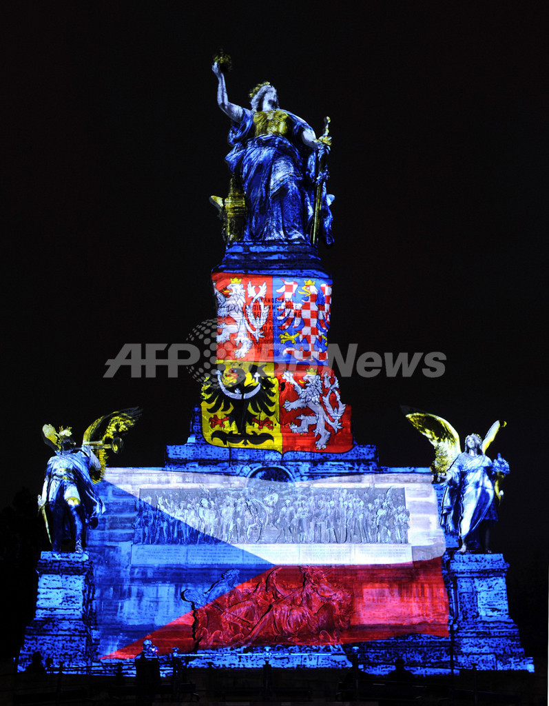 ニュース ライフ ドイツの記念碑、欧州各国の国旗色にライトアップ 2009年10月5日 15:10 発信地:リューデスハイム/ドイツ [ ヨーロッパ ドイツ ] このニュースをシェア ‹ › ❮ 9/14 ❯ ドイツ・リューデスハイム(Ruedesheim)にあるニーダーヴァルトの森の記念碑が、2日から4日まで、欧州各国の国旗色にライトアップされる催しが行われた。考案者は、英国の芸術家ロス・アシュトン(Ross Ashton)氏。写真は、同碑に浮かび上がったチェコ国旗(2009年9月30日撮影)。(c)AFP/DDP/TORSTEN SILZ 画像作成中 ! 【10月5日 AFP】ドイツ・リューデスハイム(Ruedesheim)にあるニーダーヴァルトの森の記念碑が、2日から4日まで、欧州各国の国旗色にライトアップされる催しが行われた。考案者は、英国の芸術家ロス・アシュトン(Ross Ashton)氏。(c)AFP ライフ 一覧へ> メディア・報道関係・法人の方向け 写真・動画 購入のお問合せ>