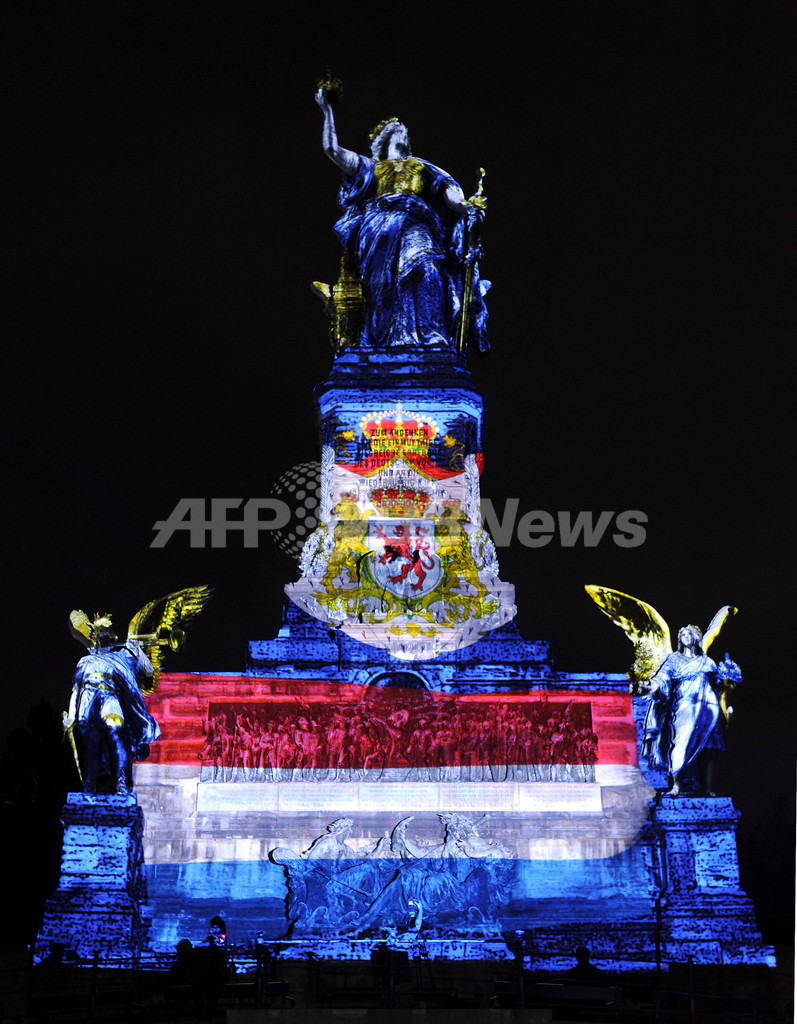 ニュース ライフ ドイツの記念碑、欧州各国の国旗色にライトアップ 2009年10月5日 15:10 発信地:リューデスハイム/ドイツ [ ヨーロッパ ドイツ ] このニュースをシェア ‹ › ❮ 5/14 ❯ ドイツ・リューデスハイム(Ruedesheim)にあるニーダーヴァルトの森の記念碑が、2日から4日まで、欧州各国の国旗色にライトアップされる催しが行われた。考案者は、英国の芸術家ロス・アシュトン(Ross Ashton)氏。写真は、同碑に浮かび上がったオランダ国旗(2009年9月30日撮影)。(c)AFP/DDP/TORSTEN SILZ 画像作成中 ! 【10月5日 AFP】ドイツ・リューデスハイム(Ruedesheim)にあるニーダーヴァルトの森の記念碑が、2日から4日まで、欧州各国の国旗色にライトアップされる催しが行われた。考案者は、英国の芸術家ロス・アシュトン(Ross Ashton)氏。(c)AFP ライフ 一覧へ> メディア・報道関係・法人の方向け 写真・動画 購入のお問合せ>