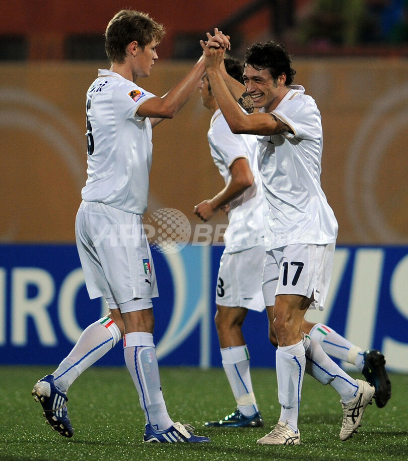 スポーツ サッカー イタリア スペイン下し準々決勝進出、U20W杯 2009年10月6日 12:22 発信地:カイロ/エジプト [ 中東・北アフリカ エジプト ] このニュースをシェア ‹ › ❮ 1/10 ❯ サッカーU20W杯2009(%%U-20 World Cup 2009%%)決勝トーナメント1回戦。スペイン対イタリア。試合はイタリアが3-1で勝利し、準々決勝に進んだ。写真は得点を決めてチームメイトとともに喜ぶイタリアのマッティア・ムスタッチョ(%%Mattia Mustacchio%%、右)。(2009年10月5日撮影)(c)AFP/KHALED DESOUKI 画像作成中 ! 【10月6日 AFP】サッカーU20W杯2009(U-20 World Cup 2009)決勝トーナメント1回戦。スペイン対イタリア。試合はイタリアが3-1で勝利し、準々決勝に進んだ。(c)AFP サッカー 一覧へ> メディア・報道関係・法人の方向け 写真・動画 購入のお問合せ>