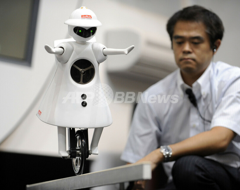 【10月6日 AFP】村田製作所(Murata Manufacturing)は6日、千葉・幕張メッセで開幕したアジア最大の最先端IT・エレクトロニクス総合展「CEATEC JAPAN(シーテックジャパン)2009」で、一輪車型ロボット「ムラタセイコちゃん(Murata-seiko-chan)」2009年モデルを公開した。高さ50センチ、重さ6キロの「ムラタセイコちゃん」は、前進や後退する際にバランスを維持するジャイロセンサーなど、さまざまなセンサーを内蔵している。(c)AFP