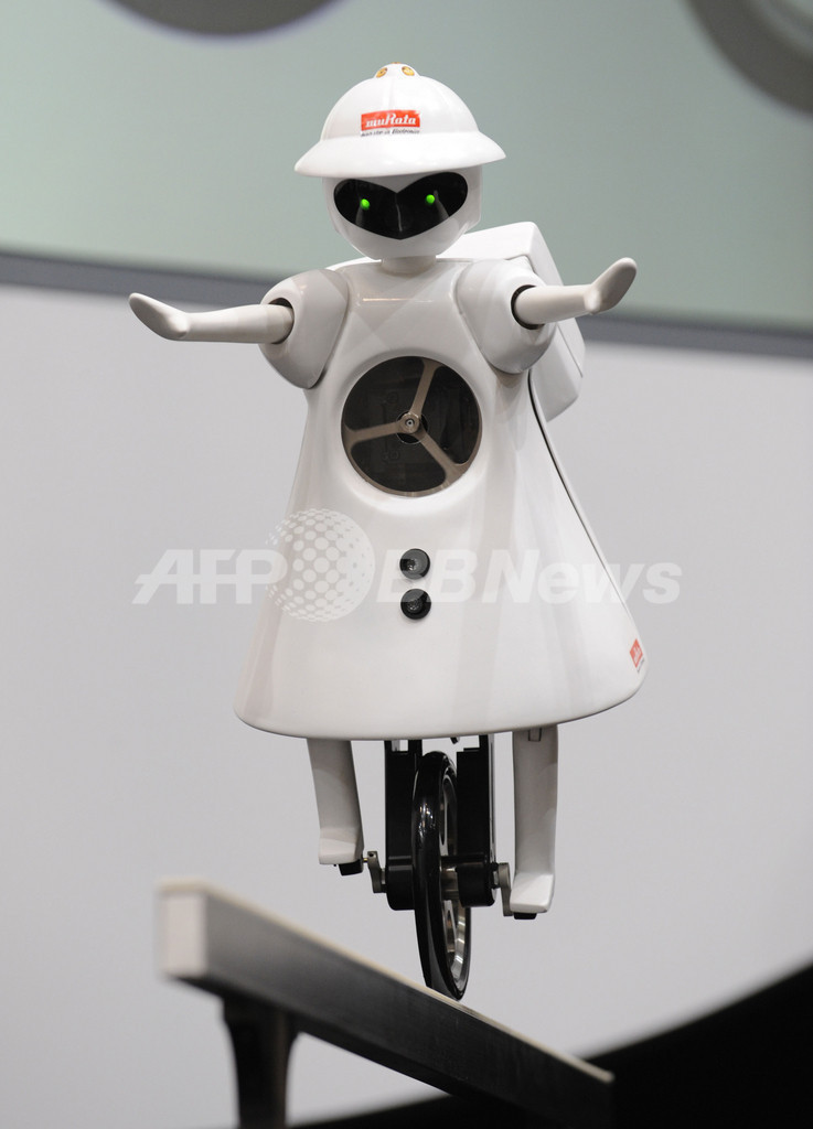 【10月6日 AFP】村田製作所(Murata Manufacturing)は6日、千葉・幕張メッセで開幕したアジア最大の最先端IT・エレクトロニクス総合展「CEATEC JAPAN(シーテックジャパン)2009」で、一輪車型ロボット「ムラタセイコちゃん(Murata-seiko-chan)」2009年モデルを公開した。高さ50センチ、重さ6キロの「ムラタセイコちゃん」は、前進や後退する際にバランスを維持するジャイロセンサーなど、さまざまなセンサーを内蔵している。(c)AFP