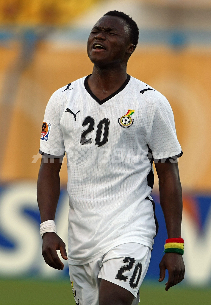 スポーツ サッカー ガーナ 延長戦の末南アフリカを下す、U20W杯 2009年10月7日 12:03 発信地:カイロ/エジプト [ 中東・北アフリカ エジプト ] このニュースをシェア ‹ › ❮ 7/8 ❯ サッカーU20W杯2009(%%U-20 World Cup 2009%%)決勝トーナメント1回戦。ガーナ対南アフリカ。試合は延長戦の末、ガーナが2-1で勝利し準々決勝に進んだ。写真は得点機を逸して落胆するガーナのドミニク・アディアー(%%Dominic Adiyiah%%)。(2009年10月6日撮影)(c)AFP/CRIS BOURONCLE 画像作成中 ! 【10月7日 AFP】サッカーU20W杯2009(U-20 World Cup 2009)決勝トーナメント1回戦。ガーナ対南アフリカ。試合は延長戦の末、ガーナが2-1で勝利し、準々決勝に進んだ。(c)AFP サッカー 一覧へ> メディア・報道関係・法人の方向け 写真・動画 購入のお問合せ>