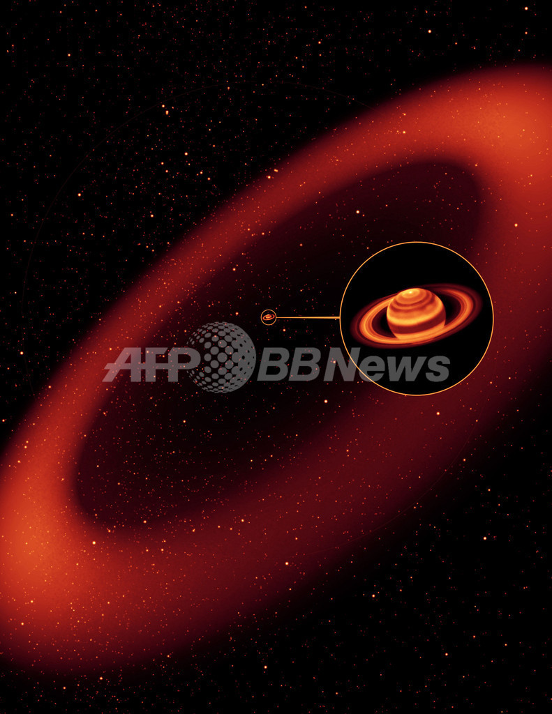 【10月8日 AFP】米航空宇宙局(NASA)は7日、土星を囲む太陽系最大の輪を発見したとの論文を、英科学誌「ネイチャー(Nature)」に発表した。土星の衛星「フェーベ(Phoebe)」が放出したちりや氷によって生じたとみられるという。
