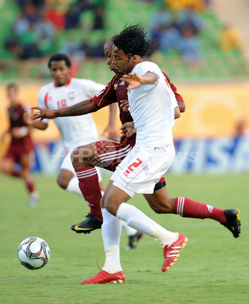 スポーツ サッカー UAE ベネズエラに勝利し準々決勝進出、U20W杯 2009年10月8日 8:15 発信地:スエズ/エジプト [ 中東・北アフリカ エジプト ] このニュースをシェア ‹ › ❮ 8/10 ❯ サッカーU20W杯2009(%%U-20 World Cup 2009%%)決勝トーナメント1回戦、ベネズエラ対アラブ首長国連邦(UAE)。試合はUAEが2-1で勝利し、準々決勝に進出した。写真はベネズエラのホナタン・デルバレ(%%Yonathan Del Valle%%)とボールを競るUAEのサド・スラー(%%Saad Surour%%)。(2009年10月7日撮影)(c)AFP/KHALED DESOUKI 画像作成中 ! 【10月8日 AFP】サッカーU20W杯2009(U-20 World Cup 2009)決勝トーナメント1回戦、ベネズエラ対アラブ首長国連邦(UAE)。試合はUAEが2-1で勝利し、準々決勝に進出した。(c)AFP サッカー 一覧へ> メディア・報道関係・法人の方向け 写真・動画 購入のお問合せ>