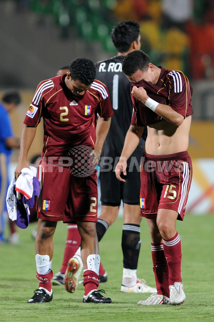 スポーツ サッカー UAE ベネズエラに勝利し準々決勝進出、U20W杯 2009年10月8日 8:15 発信地:スエズ/エジプト [ 中東・北アフリカ エジプト ] このニュースをシェア ‹ › ❮ 2/10 ❯ サッカーU20W杯2009(%%U-20 World Cup 2009%%)決勝トーナメント1回戦、ベネズエラ対アラブ首長国連邦(UAE)。試合はUAEが2-1で勝利し、準々決勝に進出した。写真はベンチで敗戦に落胆するベネズエラの選手たち。(2009年10月7日撮影)(c)AFP/KHALED DESOUKI 画像作成中 ! 【10月8日 AFP】サッカーU20W杯2009(U-20 World Cup 2009)決勝トーナメント1回戦、ベネズエラ対アラブ首長国連邦(UAE)。試合はUAEが2-1で勝利し、準々決勝に進出した。(c)AFP サッカー 一覧へ> メディア・報道関係・法人の方向け 写真・動画 購入のお問合せ>
