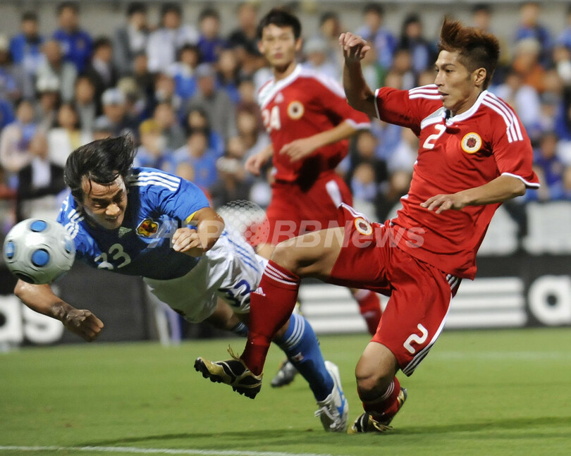 【10月8日 AFP】(9日写真追加、記事更新)サッカー第15回アジアカップ(AFC Asian Cup 2011)最終予選グループA、日本対香港。日本は岡崎慎司(Shinji Okazaki)のハットトリックなどで6-0と大勝した。