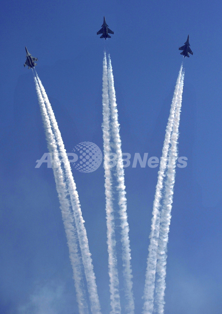 ニュース ライフ インド空軍創設記念パレード、国旗色の飛行機雲でお祝い 2009年10月9日 8:01 発信地:ヒンドン/インド [ アジア・オセアニア インド ] このニュースをシェア ‹ › ❮ 6/9 ❯ インド空軍(IAF)は首都ニューデリー(New Delhi)郊外のヒンドン(Hindon)にある空軍基地で8日、「IAF Day Parade(インド空軍デー・パレード)」を行った。インド空軍は今年で創設77周年を迎えた。写真は、ヒンドンの空軍基地で行われた「IAF Day Parade」で、スホイ30MKI(Sukhoi SU-30 MKI)でアクロバット飛行を披露するインド空軍アクロバット飛行隊Sarang(2009年10月8日撮影)。(c)AFP/Manpreet ROMANA 画像作成中 ! 【10月9日 AFP】インド空軍(IAF)は首都ニューデリー(New Delhi)郊外のヒンドン(Hindon)にある空軍基地で8日、「IAF Day Parade(インド空軍デー・パレード)」を行った。インド空軍は今年で創設77周年を迎えた。(c)AFP ライフ 一覧へ> メディア・報道関係・法人の方向け 写真・動画 購入のお問合せ>