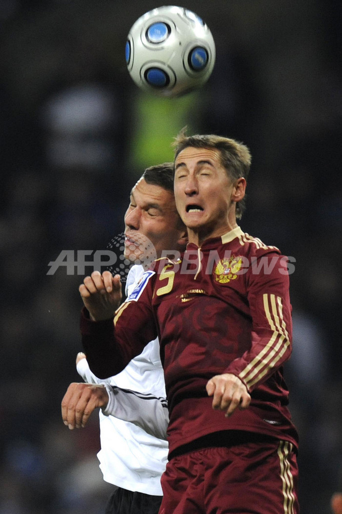 【10月11日 AFP】(写真追加、記事更新)2010年サッカーW杯南アフリカ大会(2010 World Cup)欧州予選・グループ4、ロシア対ドイツ。試合はミロスラフ・クローゼ(Miroslav Klose)の得点でドイツが1-0で勝利し、本大会出場を決めた。